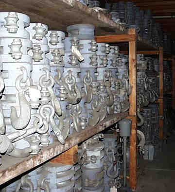 | Sheaves / Pulleys | Cast steel, Fiber rope type: 6" to 10" diameter. Wire rope type: 14",16",18", 20" and 24 " diameter, grooved for 3/4" to 1 1/8 " wire rope, most new / surplus, (oec) | $5 to $125 ea |