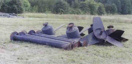 | Cleats, fabricated | 30", 36" and 46" tip to tip, fabricated welded pipe, 4", 4 1/2" and 6 1/2" diameter pipe, used, 1 of each size. Weighs 230 lbs, 326 lbs and 256 lbs,(op) | $175 /300 / 250 | |